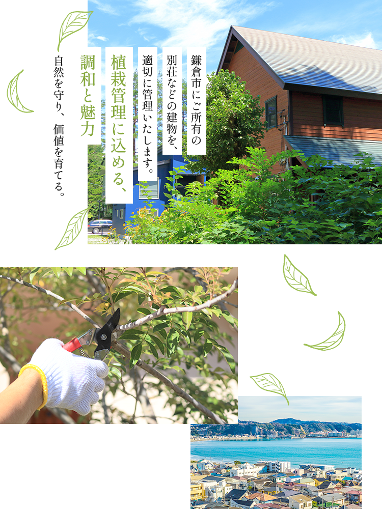 鎌倉市で主に建物の植栽管理や別荘管理を行っています。
